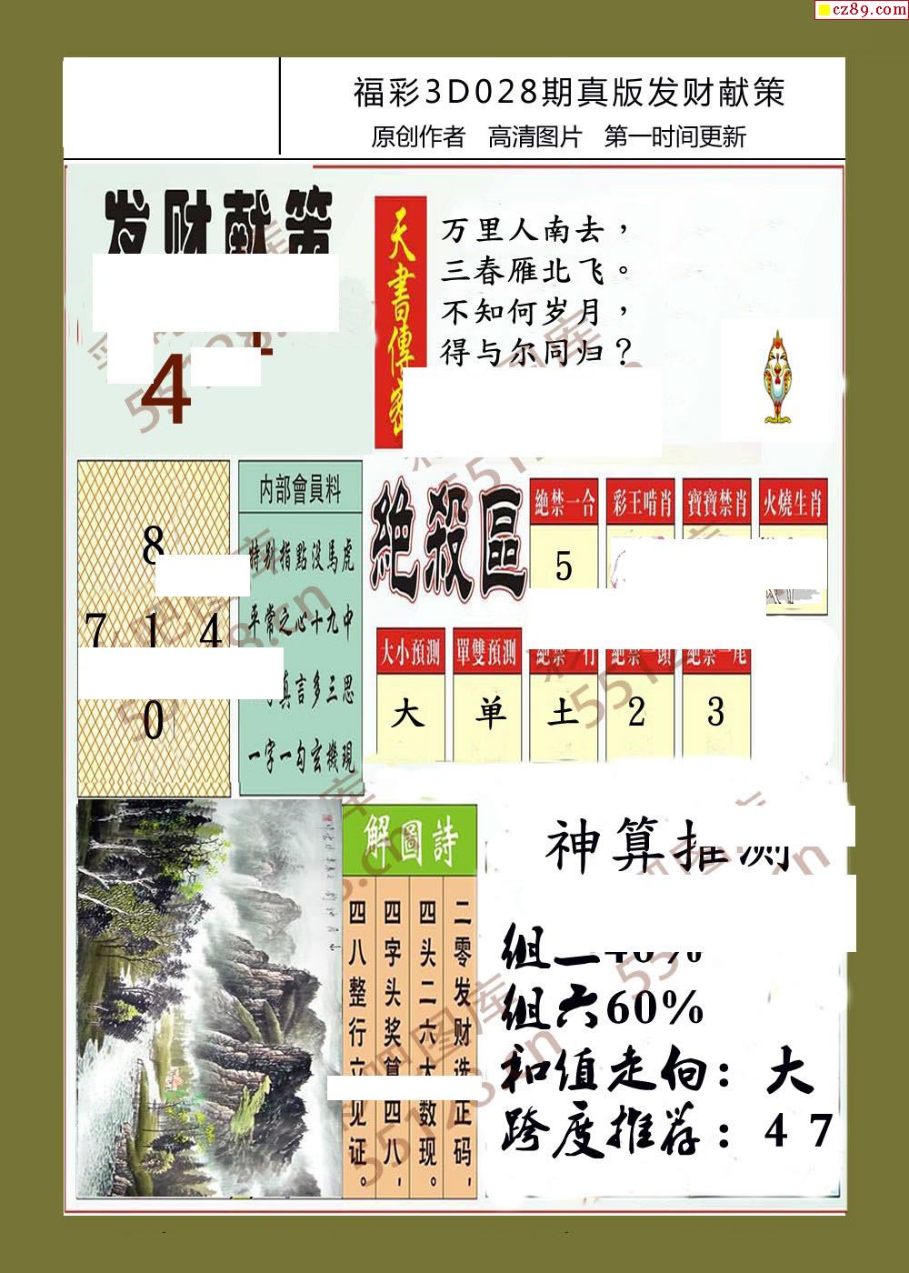 > 发财献策26年028期福彩3d字画报