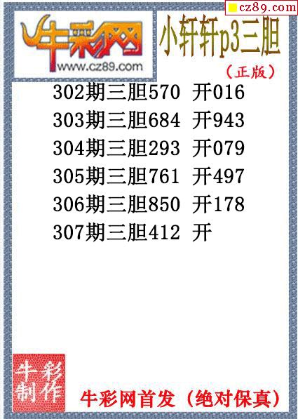 > 小轩轩三胆307期体彩P3图谜(原创)